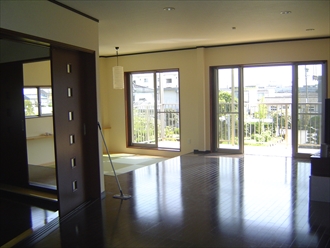 こちらの事例では、日当たりと配管を考慮した上で、お客様のご希望をお聞きして、広い間取りを実現しました。